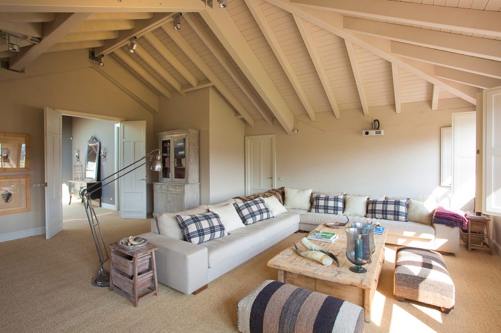 The ground floor has been designed to comfortably accommodate a large group of guests. Everything from the wide entrance hall with its elegant fireplace to the extremely spacious sitting area and stylish kitchen has been meticulously planned and built in a way that favors open-plan living. The living room features two separate sitting areas, and the fully-equipped kitchen offers guests a more relaxed eating area as an alternative to the more formal and very luxurious dining room.